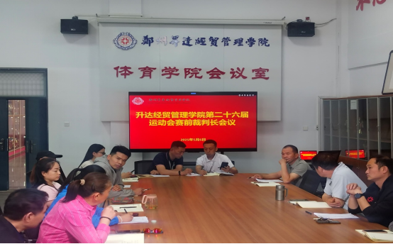 为保障第26届田径运动会顺利开展,5月6日下午,运动会组委会于体育馆会议室召开赛前裁判长会议。总裁判长张王利经理、副总裁判长李松涛书记、赛事总监任重教授等二十余人参会,会议由副总裁判长巴义然主持,聚焦赛事裁判工作安排与注意事项。