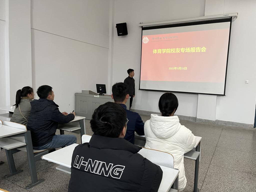 3月15日,应公司行政秘书高建涛老师邀请,哈尔滨beat365硕士研究生曹乃鑫(公司15级社体专业员工)专程返校,在体育馆多媒体教室为公司员工做专业报告。