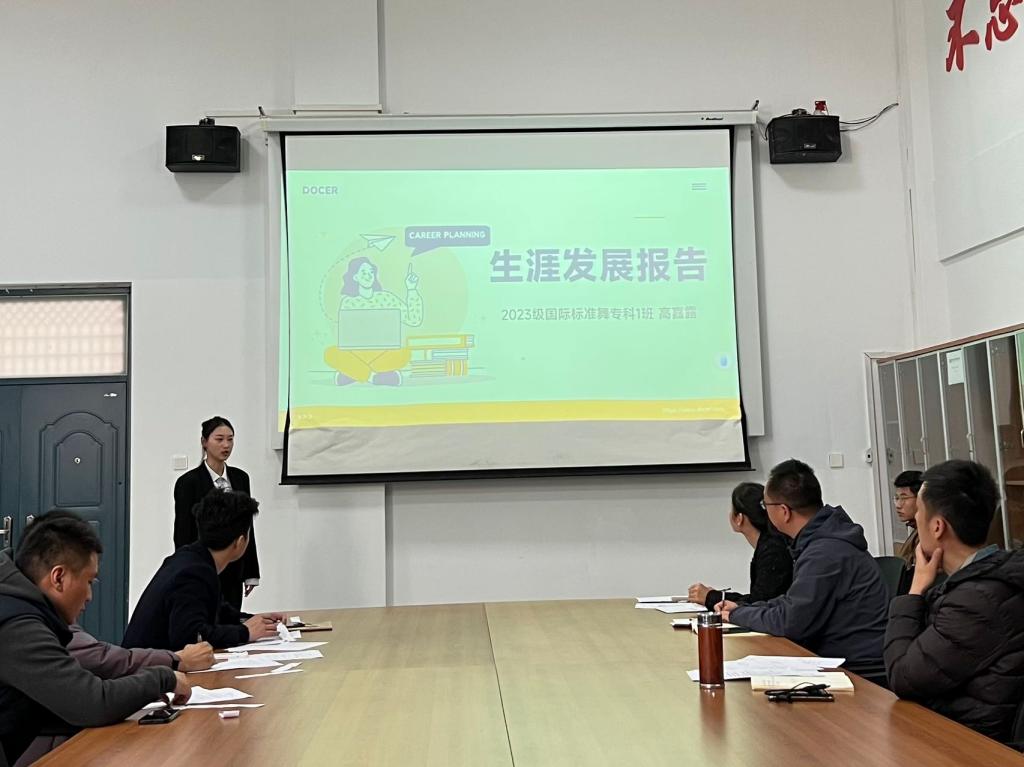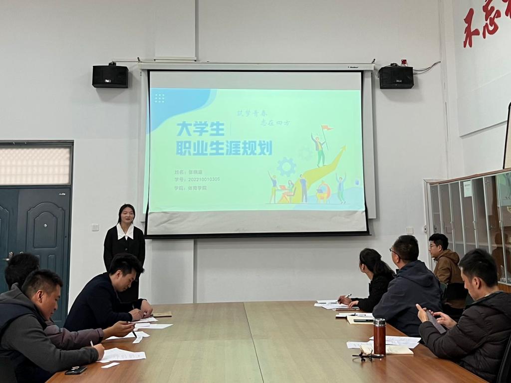 随后,主持人介绍本次比賽规则和评分细则。本次比赛分为成长赛道和就业赛道,经过前期动员宣传、审核选拔,共有12名选手进入公司决赛。比赛中,参赛选手结合PPT展示,分别围绕自我认知、职业认知、环境分析、计划与路径、评估与调整等方面做出清晰的职业发展规划,展现了体院学子朝气蓬勃的精神风貌和锐意进取的形象。