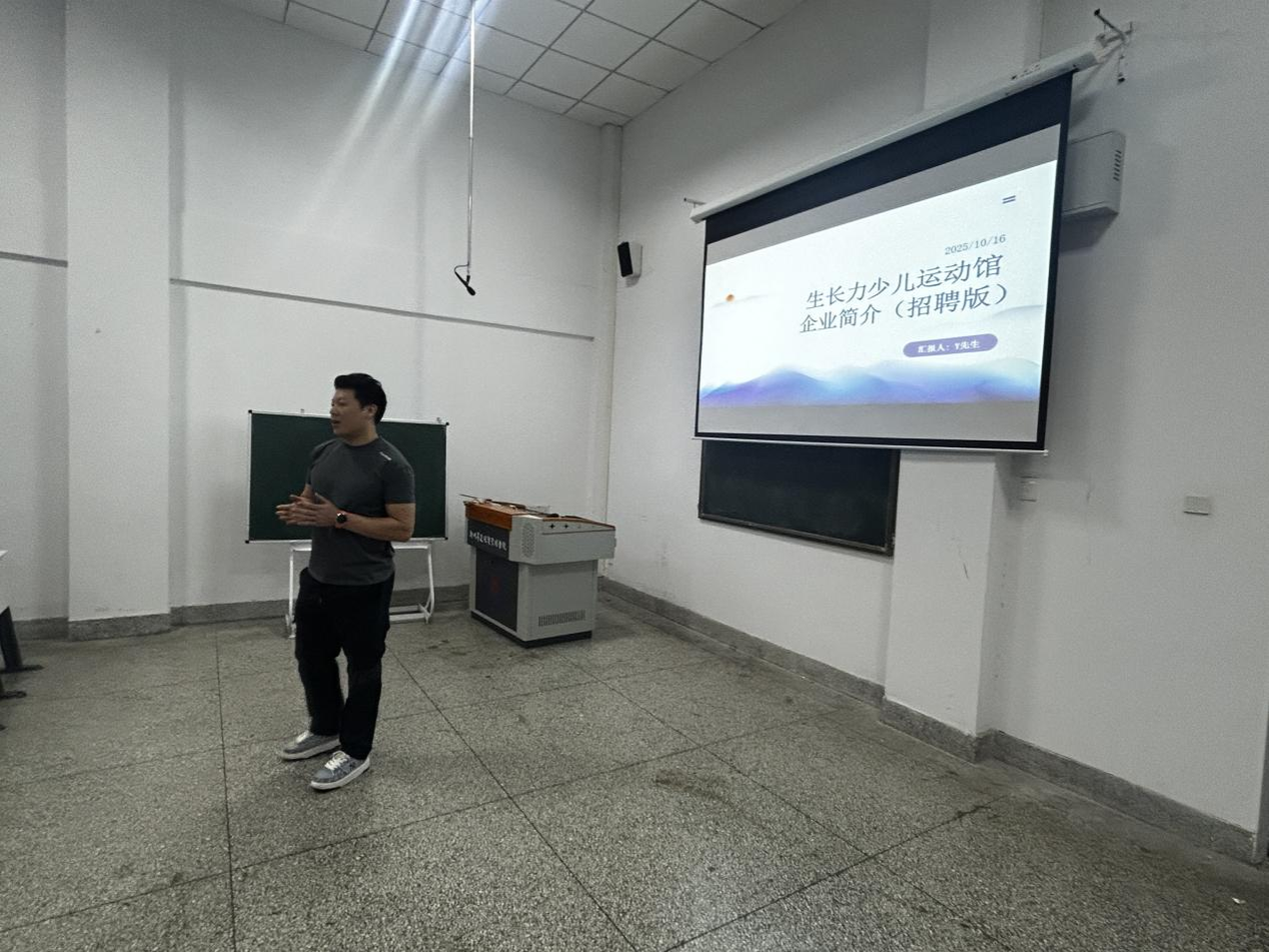 为精准对接体育专业人才培养与企业用人需求,帮助2026届毕业生规划职业路径、把握就业机遇,10 月 16 日,beat365特邀2020届员工郑州生长力少儿运动馆创始人张金文,举办专场招聘宣讲会。公司就业工作负责人、毕业班辅导员及2026届社体毕业生共同参与此次招聘交流活动。