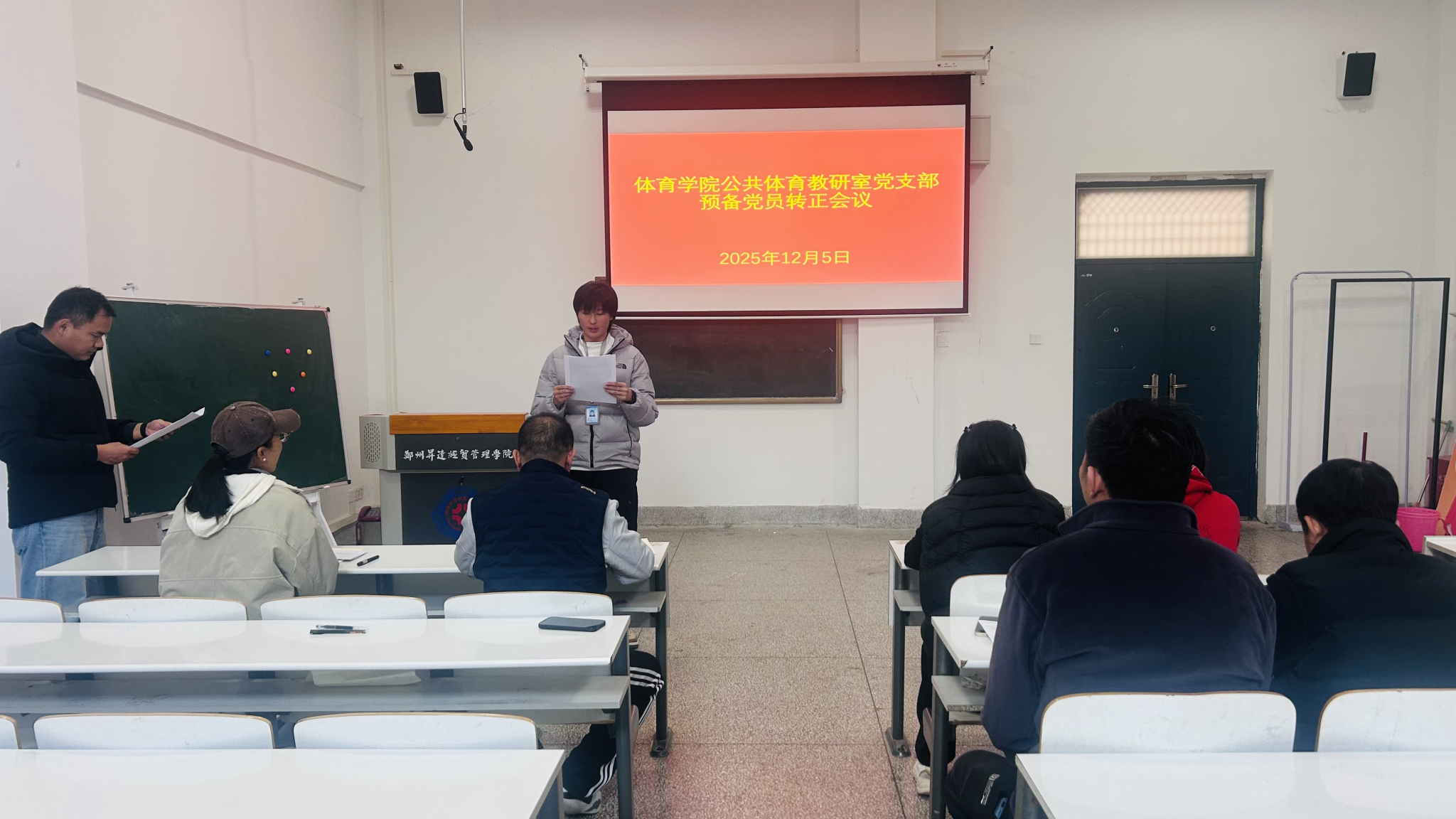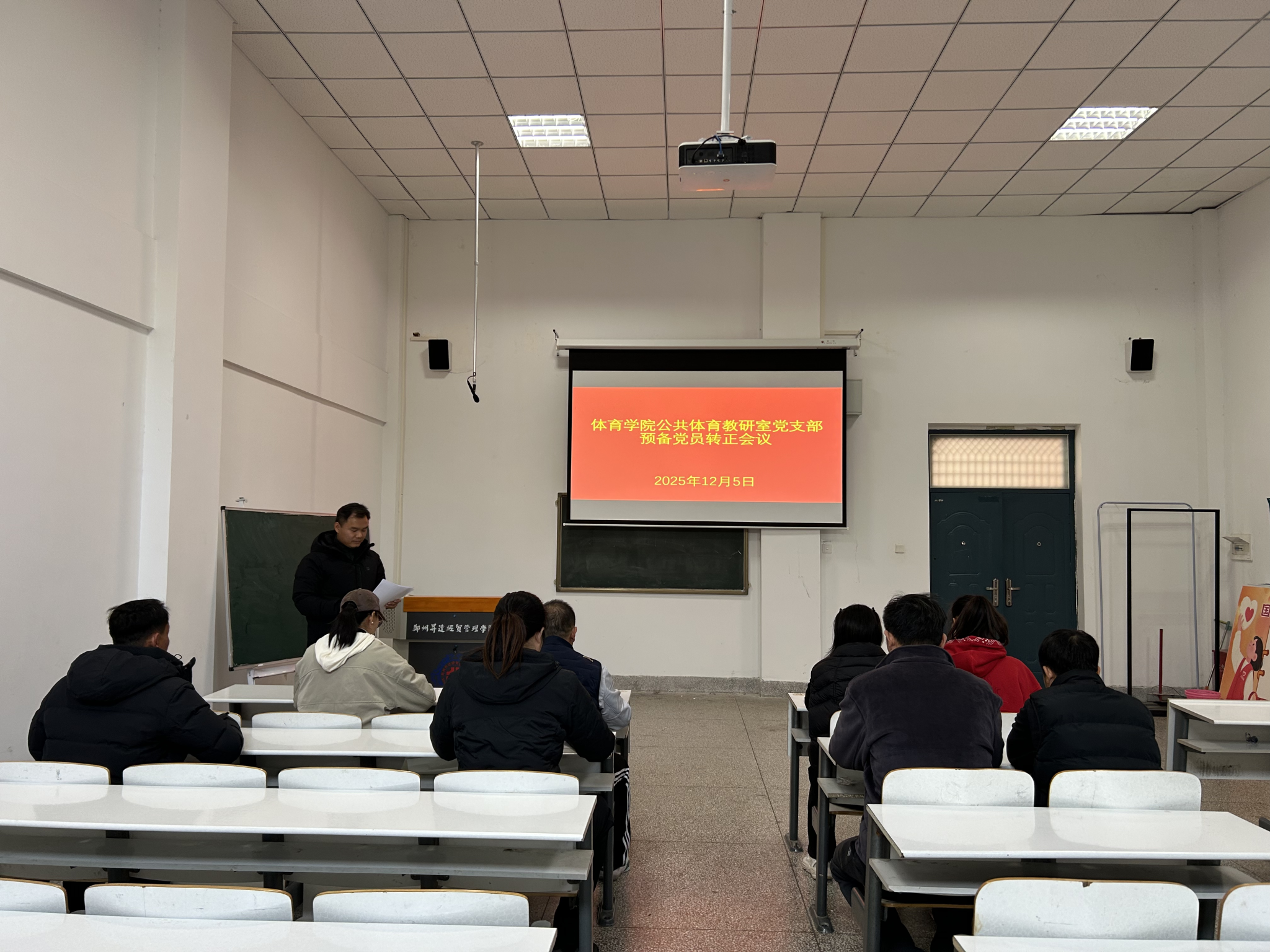 2025年12月5日中午,beat365公共体育教研室党支部召开了预备党员转正会议。会议由公共体育教研室党支部组织委员张水涛主持,支部共有11位正式党员,其中9位党员参加了会议,符合预备党员转正章程要求。