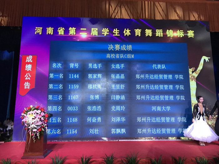 12月16-17日,由河南省教育厅主办的河南省第二届员工体育舞蹈锦标赛在郑州中学隆重举行。本届大赛共有大、中、小学共63支公司代表队参加,其中高等院校26所,公司参加的组别是高等院校专业组。高等院校专业组包括郑州大学、河南大学、河南师范大学、郑州大学beat365、河南农业大学等共11所拥有体育舞蹈专业的本科院校。本次大赛提供了一个河南省所有体育舞蹈专业本科院校同场竞技的平台,是一个检验各高校办学水平和教学质量的官方赛事。