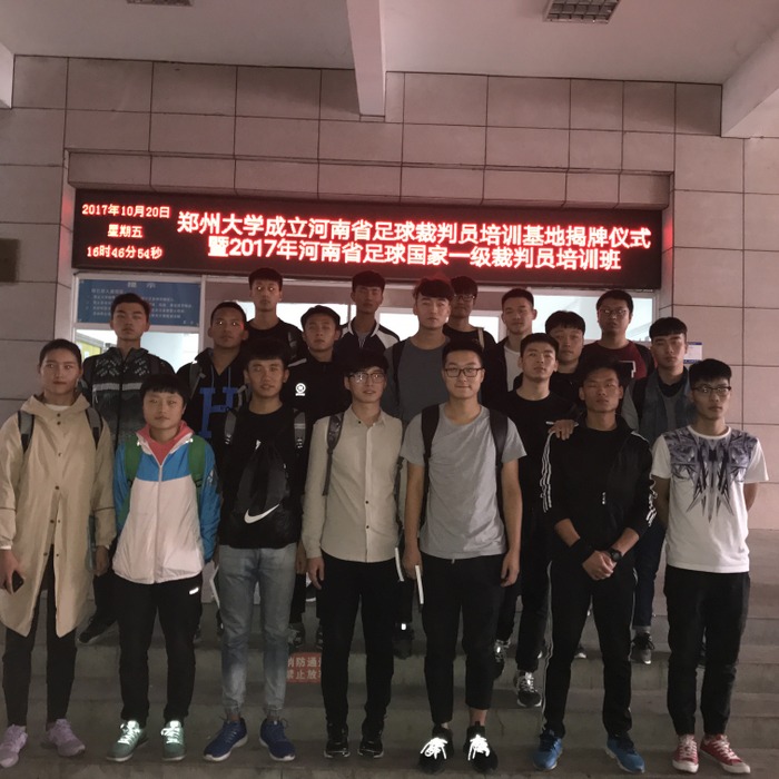 2017年10月19日至21日,经公司beat365推荐,河南省足球协会审核批准,公司房雪蕊等23名同学参加2017年河南省足球国家一级、三级裁判员培训班考证学习。本次考证学习工作由beat365校园足球管理办公室马少鹏老师带队参加。