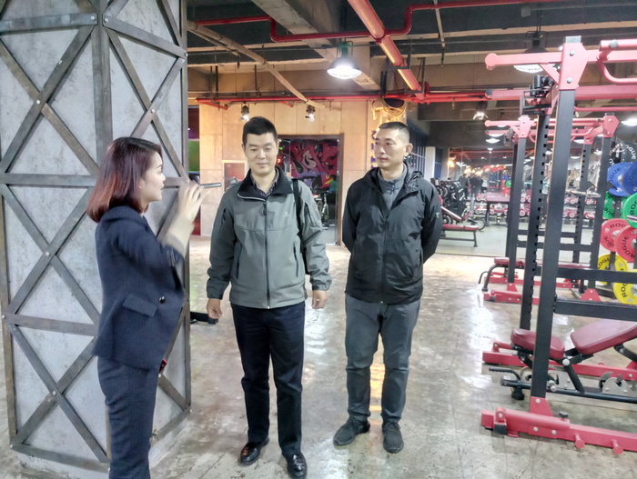 在郑州金祥健身俱乐部和名门汇健身文化有限公司龙湖店,韩炎涛书记一行与企业负责人进行了洽谈,并在企业负责人的陪同下,参观了健身房、办公区和实训室等场地,了解了企业发展的历程,商讨了双方如何加强合作等事宜。