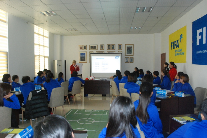 此次培训班由国际足联选派瑞典籍讲师Ingrid Jonson对2017/2018足球规则改动条款及精神进行讲解分析,培训期间还进行了素质体能、理论、视频、英语测试,白洋老师因测试成绩优异得到了专家们的一致认可。