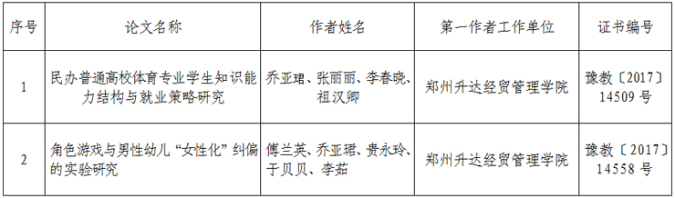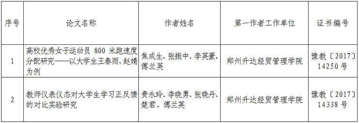 2017年河南省教育厅公司体育科学论文评选活动获奖结果