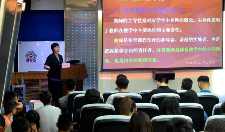 2016年9月12日14:00在图书馆学术报告厅顺利举行。出席本次报告会的嘉宾有郭爱先经理、姚洁教授、石丽教授、黄志诚副教授、体育系主任张王利副教授、体舞教研室主任栗元辉老师、社体教研室主任巴义然老师等以及体育系全体师生。