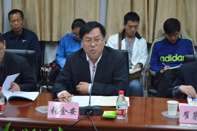 21日上午10点30分,评估专家组在公司经理崔慕岳教授、公司党委常务副书记戎庭银、张金安副经理、王新奇执行董事、段丰乐副经理和相关部门一级主管的陪同下,在公司行政楼第二会议室召开了落实河南省高校体育工作十项规定检查汇报会。崔慕岳经理主持并致辞,由张金安副经理作了总体工作汇报。