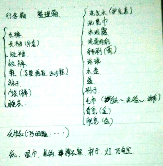 下图是我系新生自己列的物品明细,可参考
