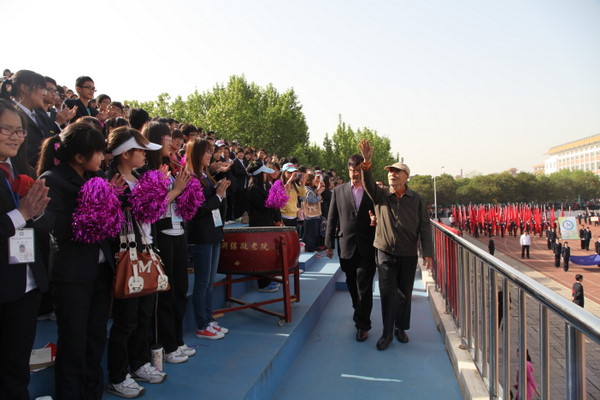 尊敬的创办人王广亚博士在百忙中专程从台北赶到升达,参加运动会开幕式,受到与会师生热烈欢迎。
