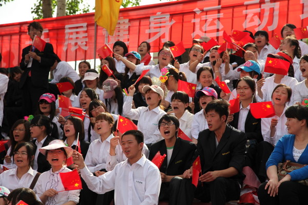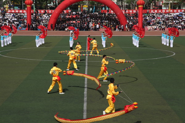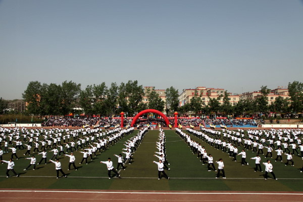 随后,精彩的文艺表演开始:冬之韵——陈氏十八式太极拳;秋之实——旗棍武术;夏之花——健美操;春之华——龙飞扇舞,精心的编排,绚丽的表演,优美的造型,震撼的气势,让观众眼前一亮。