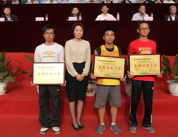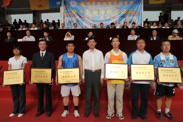 国贸系、会计系、营销系分获总团体冠、亚、季军;国贸系、营销系分获男子团体冠、亚军;国贸系、会计系分获女子团体冠、亚军;国贸系、会计系获得2011年度体育先进单位。院领导分别向获奖集体颁发了奖杯和奖牌,并合影留念。