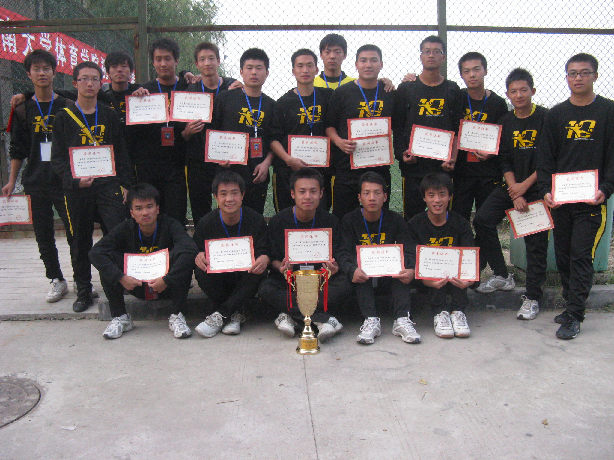 公司足球队,在公司党政领导的关怀下,在公司体育部的带领下,谨遵升达校训,弘扬升达精神,同时发扬了刻苦训练、顽强拼搏、不畏强手、勇于竞争、团结向上的体育运动精神。在本次比赛中,公司共有胡超宇(企管系)、李梦阳(企管系)、宋林(资讯系)、3位同学被河南省教育厅授予省级“精神文明运动员” 称号,白洋老师被授予省级“优秀教练员”称号。