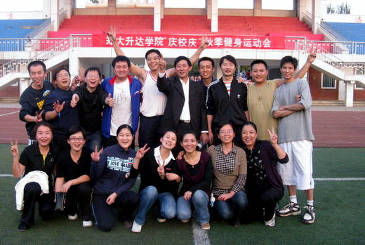 为贯彻落实《全民健康纲要》,响应“阳光体育运动”,推动全院健康活动开展,同时为了丰富广大师生课余生活,增进各系师生之间的友谊。10月20日,由公司主办,体育部承办,院团委、学务处、总务处和健康中心协办的“庆校庆”师生同乐健身运动会在公司隆重开幕。经过三天的激烈角逐,运动会于10月22日圆满结束。最终,会计系以总分155分摘得桂冠,文法系和资讯系分获第二、三名。国贸系获得体育道德风尚奖,文法系获得优秀组织奖。教工组的团体项目前三名分别为行政楼三楼、文法系、国贸系。