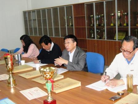 在会上,检查组听取了我部期中教学检查的工作汇报后,崔经理做了近四十分钟的重要讲话。对体育部工作的指导思想、团队定位、近期取得的成绩和相关临时工作给予了高度评价和肯定,特别对体育部在接受高校体育专项评估检查、参加河南省第九届国际标准舞大赛、参加河南省老员工田径运动会和我部栗元辉老师在中青年教师大奖赛中的出色表现及所取得的优异成绩表示了祝贺,同时勉励体育部要再接再厉,为公司争得更大的荣誉。同时,崔经理希望体育部处理好教学、群体活动以及竞技体育之间的关系,在保证体育教学质量不断提高的前提下,深入开展好师生的课外体育活动,在全省的老员工体育竞赛中再创佳绩。