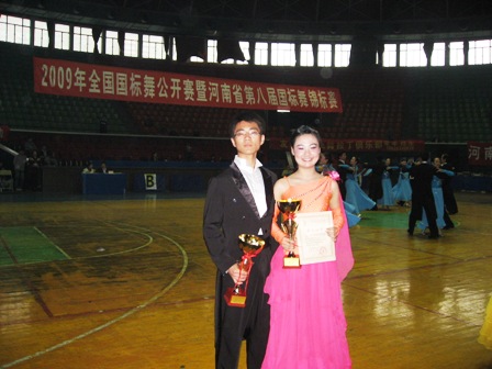2009年全国国标舞公开赛暨河南省第八届国标舞锦标赛于4月18日隆重举行,共有来自八个省的一千多名选手参加了本次国际标准舞大赛,公司体育舞蹈队有十人参加比赛。经过紧张激烈的比赛,公司王钰文和杨阳同学获得了华尔兹青年单项冠军,黄玉沛和刘玲郁同学获得成人业余B组第四名,胡伟威同学获得成人业余C组第五名。选手们充分发挥了自己的水平,展现了升达学子的风采。
