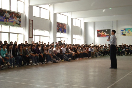 10月15日下午2:30,应公司体育部邀请,知名国标舞教师尤谊在万兴体育馆羽毛球厅为公司广大师生做了一场名为“舞蹈改变人生”的讲座。院体育部栗元辉、禹晓丽老师、院舞蹈队成员和400多名员工共同聆听了本次讲座。