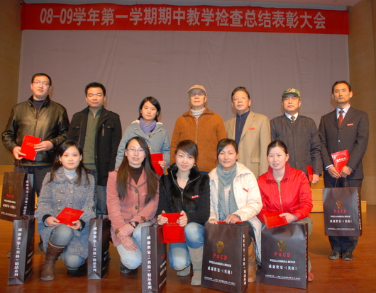 创办人(二排左四)与获奖教师合影(二排右一为栗元辉老师)