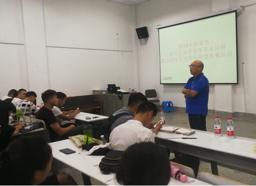 新郑市体育中心特邀请了群体科科长赵永强老师为员工们讲课,讲课内容包括社会体育的理论和宏观政策、社会体育指导员的日常工作思路和工作方法等。讲课过程中,赵老师还将多年来从事社会体育教学和实践地经验传授给了员工们,并要求大家加强学习,提升自己的业务水平。国民体质监测中心科长申慧琳老师向大家讲授了社会体育指导员如何进行网上注册,如何开展实际工作等经验。