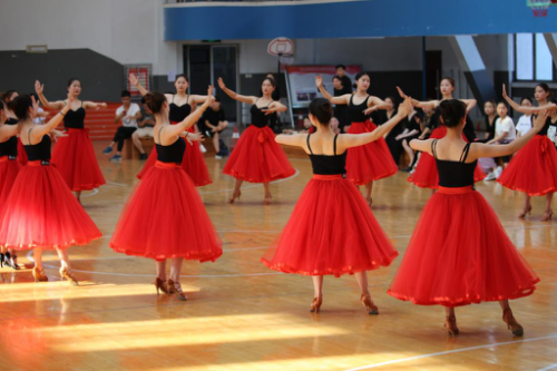 开场是15级体育舞蹈班带来的集体舞,她们倾注热情的表演,一下子就把现场气氛带到了第一个高潮。