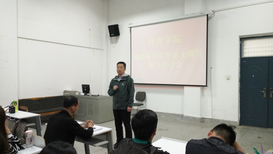10月17日下午,beat365在体育馆多媒体教室召开2019届毕业生论文撰写动员会。beat365经理丁英俊、行政秘书高建涛、社会体育教研室主任金海波、体育舞蹈教研室主任栗元辉、毕业班辅导员康晓晨出席了会议。