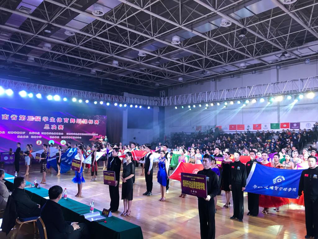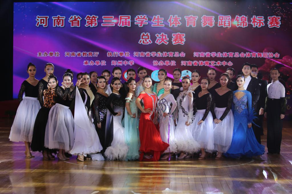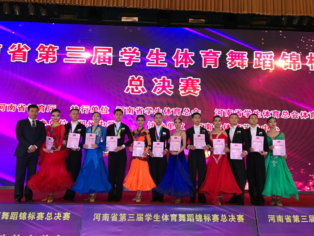 11月17日,由河南省教育厅主办的河南省第三届员工体育舞蹈锦标赛总决赛在郑州中学隆重举行。共有21所高校,33所中小学1800人次参加了本届比赛。公司体育舞蹈专业代表队在栗元辉、于贝贝老师的带领下参加本次大赛,同学们表现异常出色,以239分(高校专业组13个组别总分416分)蝉联高等院校团体第一名。至此公司体育舞蹈专业代表队连续获得该赛事第二届、第三届高校组团体第一名。