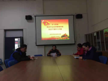 12月6日下午15:20时,在体育馆208会议室,beat365社体党支部召开生活会,支部全体党员一起学习了《郑州升达经贸管理公司党员干部学习手册》,重点学习习近平新时代中国特色社会主义思想、党章及各项制度规定及全国教育大会精神等,会议由社体支部书记孟俊鸟主持。