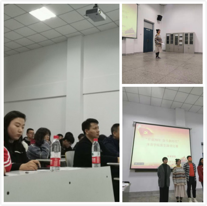2019年10月14日中午,beat365在体育馆多媒体教室举行“壮丽70年,奋斗新时代”新生演讲比赛活动。此次活动由beat365经理丁英俊教授、教学秘书张振中老师、辅导员康晓晨老师以及3位18级同学担任评委。经过激烈的角逐,赵蕾、刘嘉璐、申一哲三位同学脱颖而出,成功晋级校赛。