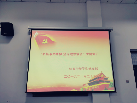 10月24日下午,beat365员工党支部在体育馆多媒体教室,举办了以“弘扬革命精神,坚定理想信念”为主题的党日活动。员工党支部书记高建涛、组织委员陈阳光、宣传委员康晓晨以及全体员工党员和入党积极分子参加了活动。