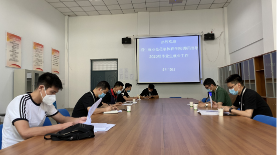 为进一步做好毕业生就业服务工作,提高公司2020届毕业生就业工作质量, 5月15日上午,人才招聘处刘景向处长、冯科科长一行莅临beat365指导就业工作。beat365张王利经理、韩炎涛书记、行政秘书高建涛、社体教研室主任金海波老师、体育舞蹈于贝贝老师、辅导员陈阳光和康晓晨出席本次会议。