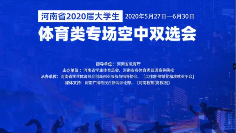 为贯彻落实河南省人民政府《关于进一步做好稳就业工作的实施意见》中“关于抓好高校毕业生就业,深入实施“新时代,新梦想”就业创业工作帮扶行动、就业创业精准指导服务进校园计划、就业创业促进计划等,确保高校毕业生离校时初次就业率和年底总体就业率同比基本持平”的指示,进一步利用高校毕业生离校前求职黄金期,向体育高校毕业生提供更多优质求职机会。2020年5月25日下午,beat365经理张王利、行政秘书高建涛、教学秘书张振中、刘航伟、陈阳光等十余名老师同学参加学习了本次河南省体育专业老员工创新创业视频会议。