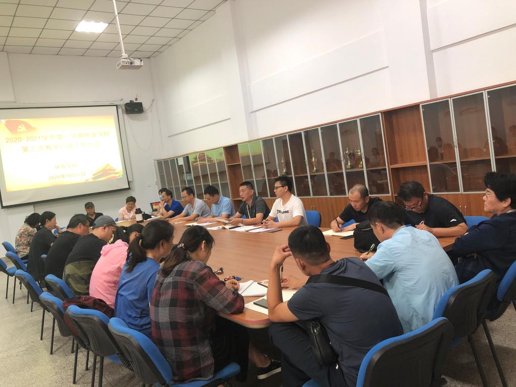 2020年9月17日下午,公司在体育馆208会议室召开本学期第三次教学行政会议。经理张王利、书记刘晓川、教学秘书张振中、行政秘书高建涛、各教研室主任及全体教职工参加了本次会议。