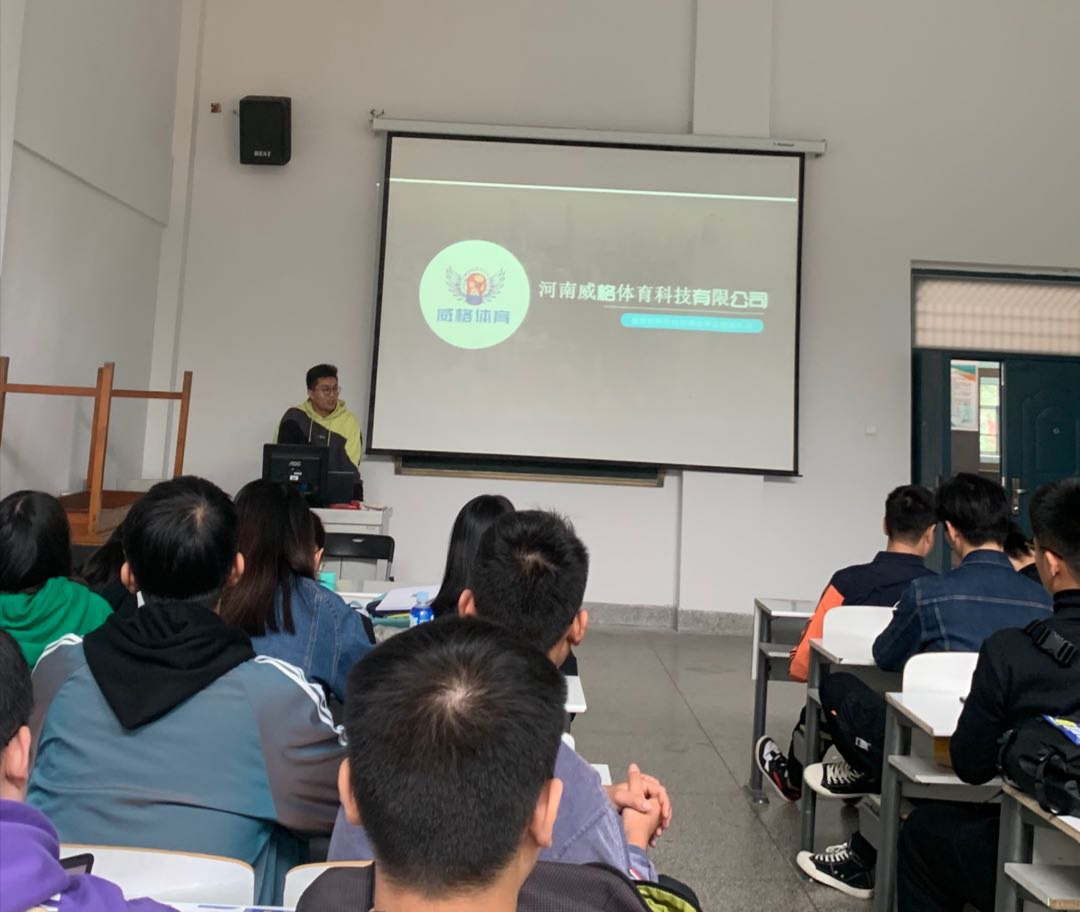 招聘会开始后,河南微格体育科技有限公司负责人向同学们介绍了企业的基本情况。包括公司的人才战略、经营原则等。公司负责人也强调,公司非常尊重员工的个人发展,注重员工的学习和培训,及公平合适的晋升机制。又介绍了公司现有的员工状况以及招聘岗位和薪资待遇。
