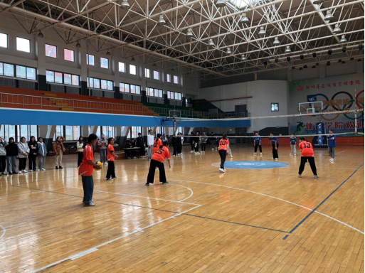 每个队都是团结的队伍,不论领先还是落后,每个人的心都凝聚在了一起,顽强拼搏永不放弃。场上队员们积极比赛,啦啦队一波未平一波又起的助威声,他们是那么的投入,那么的充满热情。