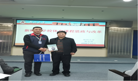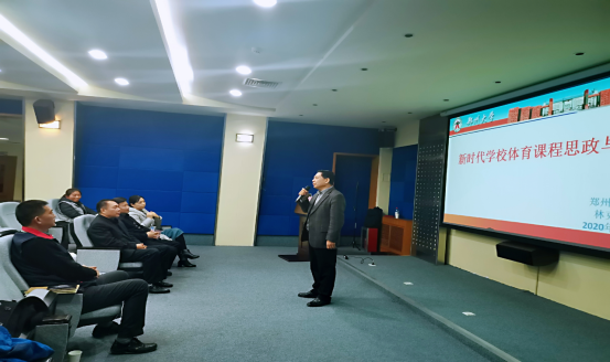 为深入贯彻教育部《高等公司课程思政建设指导纲要》文件精神,落实公司课程思政进课堂相关指示和要求,切实推动体育课程思政建设进程,2020年12月3日下午,beat365诚邀郑州大学beat365(校本部)体育与健康研究院经理林克明教授,在公司图书馆报告厅为公司师生们做了《新时代公司体育课程思政与改革》的专题讲座。公司党委书记张德伟、党办主任秦旻,beat365经理张王利、党总支书记杨明志、运动与健康研究所所长傅兰英、省校篮办专家委员会办公室主任黄志诚,beat365全体教师及部分员工共计130余人参加并聆听了报告。本次报告会由杨明志书记支持。