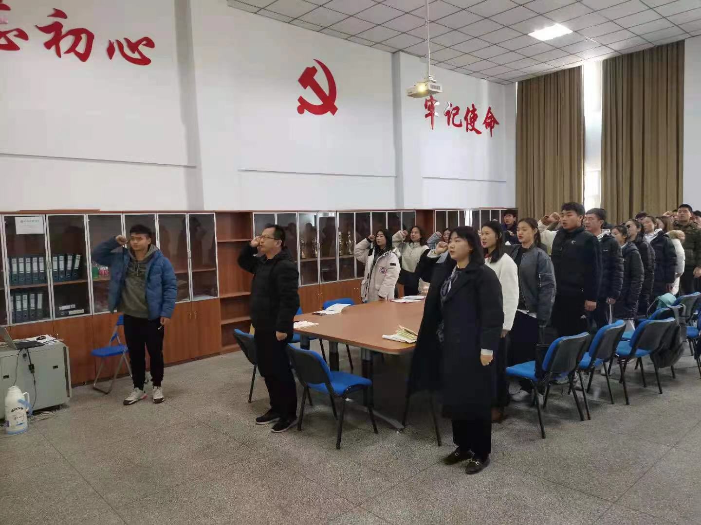 经投票表决,杨金铭、雷伶、王钰、金会琳、李甜甜、夏英健六名同志均为全票通过。支部大会同意接受其为正式中共党员。接着,面对鲜红的党旗,党支部书记高建涛同志带领大家高举右手庄重宣誓,重温自己对党虔诚的誓言,表达了为党的事业奋斗毕生的决心。
