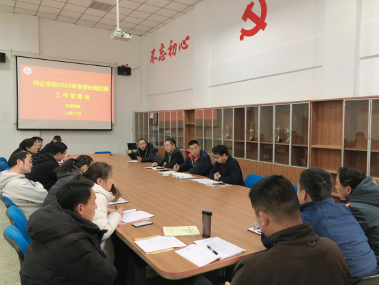 2020年12月22日下午,公共体育教研室全体教师在beat365会议室参加“升达公司2020年冬季长跑比赛工作部署会”,杨明志书记、张王利经理、杨明志书记、教学秘书张振中和公共体育教研室全体教师出席了本次会议。会议由公共体育教研室主任巴义然老师主持,首先,杨明志书记提出本次冬季长跑比赛为本学期最后一次校内竞赛,冬季又是新冠肺炎疫情高发期,要求大家在组织比赛的过程中保持社交距离,做好防护工作。由于天气寒冷,员工运动员在比赛的过程中容易受伤,因而更要做好员工在比赛过程中运动损失的防护工作,希望大家圆满得完成本次比赛任务。