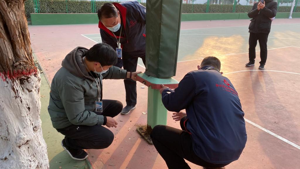 此次重点检查了体育场地场馆、体育器材的安全情况,重点排查了室外篮球场篮筐和底座锈蚀情况。在检查过程中,发现有些篮球架座、排球桩底座锈蚀严重,个别篮球底座因锈蚀严重而倾倒,篮球架螺丝松动、脱落等安全隐患,对存在的安全问题逐一进行了仔细清查,要求对存在的问题会同公司相关部门及时进行处理,确保下学期正常的教学训练和师生锻炼安全使用。