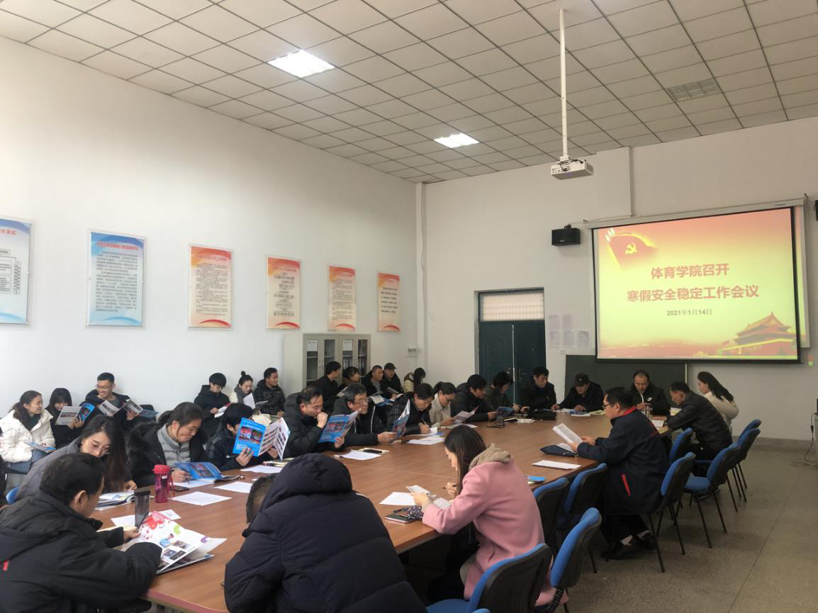 2020庚子鼠年落下帷幕,2021辛丑牛年即将到来。为了beat365师生共度安全祥和的新年假期,按照公司有关要求,beat365于1月14日下午,在体育馆会议室召开了寒假安全稳定工作会议,此次会议由公司党总支书记杨明志主持,全体教职工参加了会议。