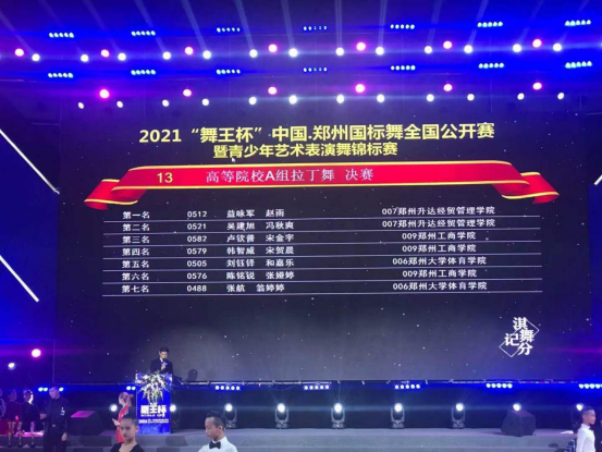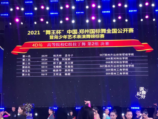 荣获高校拉丁舞C组冠军、高校单人拉丁舞精英组前六
