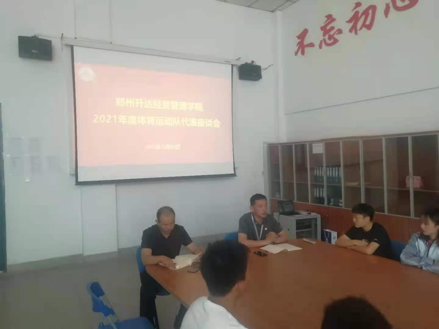为了落实升达“体育强校”的精神,进一步促进公司各体育运动队的健康成长,5月29日中午,在体育馆208会议室召开了beat365中文官网2021年度体育运动队代表座谈会,beat365经理张王利、公体教研室主任巴义然及各运动队代表参加了本次座谈会。
