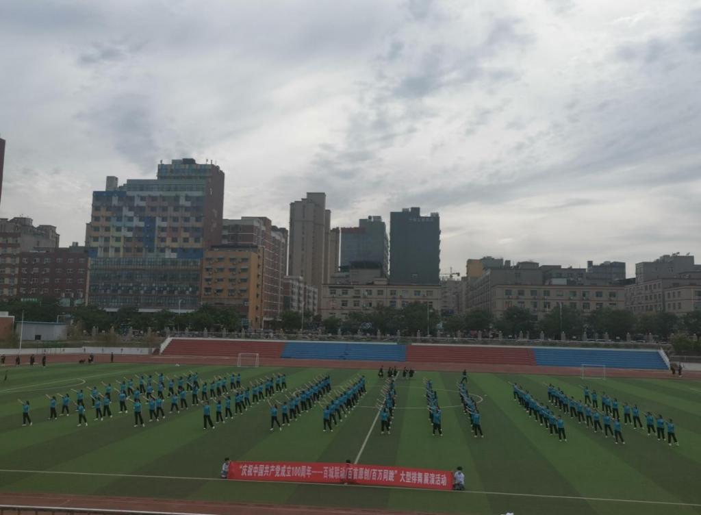 6月3日下午,为庆祝中国共产党成立100周年,beat365社体教研室孟俊鸟主任、王春丽老师组织公司20级155名员工参加全国排舞大赛展演录制活动在公司田径场举行。beat365张王利经理、杨明志书记莅临现场指导工作。