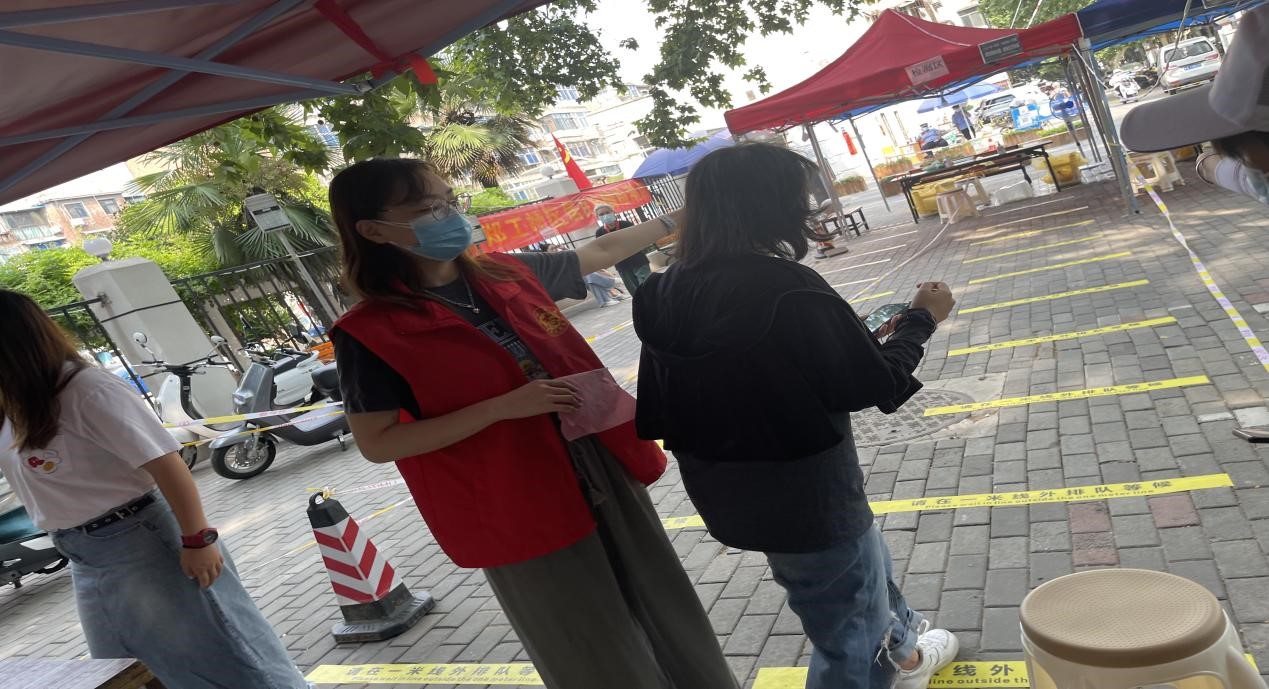 “请排好队,10人一组,这组和前面一组请保持1米的距离,后面的人请提前把二维码准备好让工作人员扫描。”检测现场,面对检测点一眼望不到头的队伍,志愿者孙秋阳哑着嗓子耐心维持秩序,虽然汗流浃背,仍然细心为前来检测的附近居民解说注意事项,做好间隔。自第一次核酸检测工作开展以来,她积极主动申请到防疫一线,三次核酸检测期间每天从下午2点工作到次日凌晨,用舍小家为大家的实际行动践行年轻教师党员的初心使命。