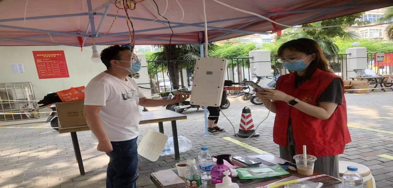 公司党总支宣传委员孙秋阳老师得知所在的郑州市中原区桐柏路街道办事处郑工社区核酸检测点疫情严重,社区的抗疫压力大、社区工作人员紧缺时,她积极联系社区人员,主动提出加入核酸检测志愿者队伍。在街道办事处的统一安排下,负责在检测点疏导人群,提醒检测群众保持距离。