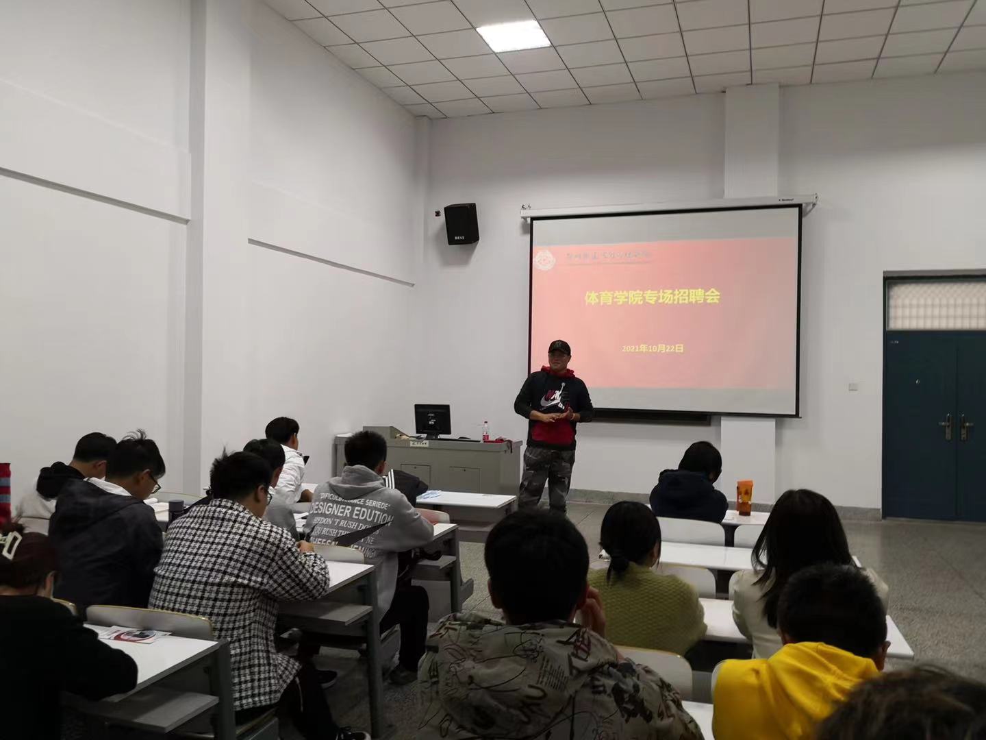 10月22日下午,郑州莱恩体育文化有限公司在beat365多媒体教室举办专场招聘会,18、19级员工参加了本次招聘会,招聘会由就业专员康晓晨老师主持。康老师对郑州莱恩体育文化有限公司莅临beat365进行专场招聘表示了热烈欢迎,并感谢该公司给公司员工提供就业的机会。接着,康老师向企业的负责人介绍了公司员工的基本情况。
