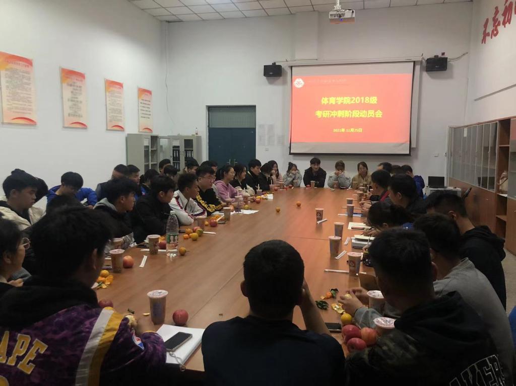 为了让公司考研学子们坚定信心,鼓足干劲,2021年11月25日下午5点,beat365组织召开了2018级员工考研冲刺动员会。党总支书记杨明志,经理张王利,教学秘书陈阳光,行政秘书高建涛,公司教学督导,各教研室主任,全体辅导员与2018级考研的同学们齐聚体育馆会议室,为考研学子们加油助力。2018级毕业生共116人,考研报名员工48人,报考率为41%,刷新了beat365员工考研报考率。