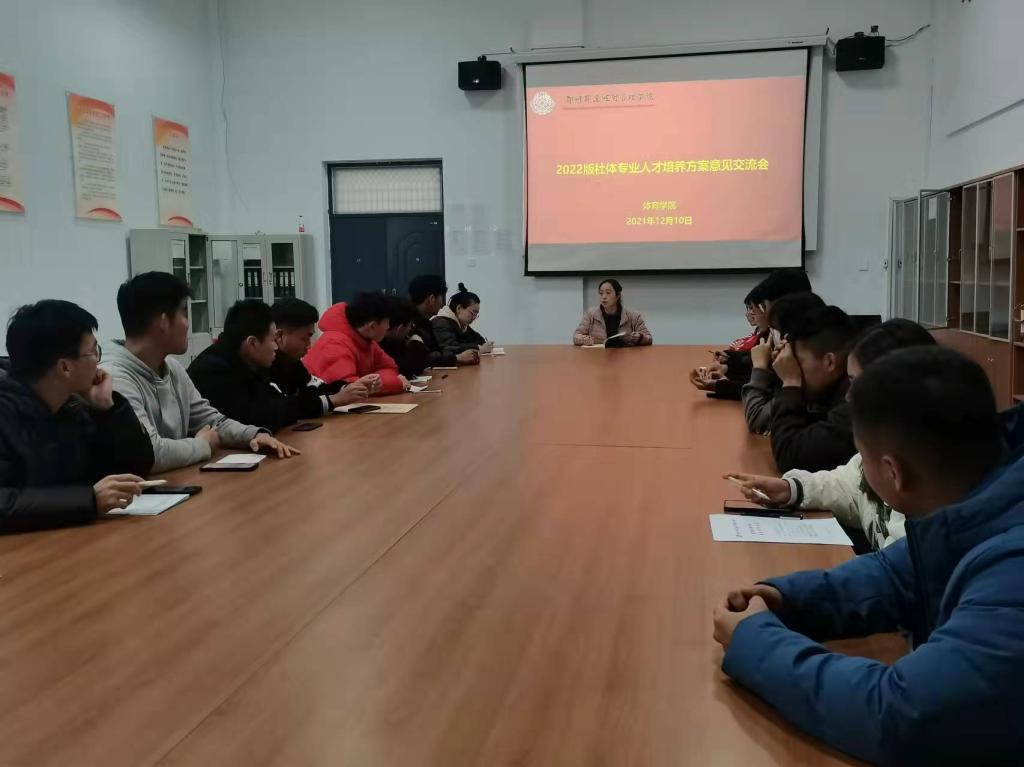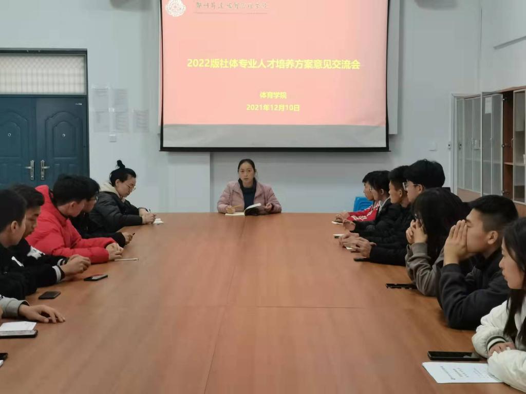 为进一步优化社会体育指导与管理专业人才培养方案,12月10日中午12:30,社体教研室组织召开了2022版人才培养方案修订师生座谈会。社体教研室孟俊鸟主任主持会议,孙秋阳老师及社体4个年级员工代表参加此次座谈会。