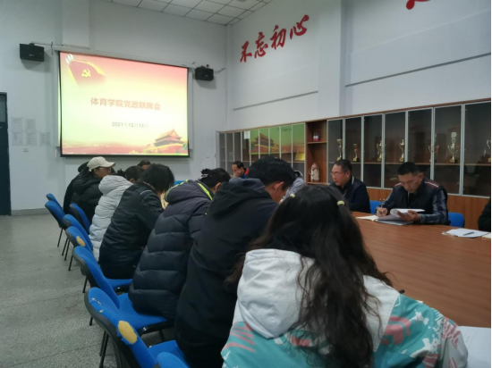 为进一步贯彻落实省教育厅及公司对疫情防控工作的安排部署,做好学期期末相关工作,12月13日下午,beat365在体育馆会议室召开党政联席会,公司党总支书记杨明志主持会议,全体总支委员、支部书记、辅导员和部分教师代表参加会议。