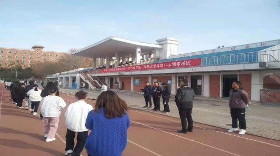 2021年12月15日上午10:00,beat365经理张王利、党总支书记杨明志、公体教研室主任巴义然来到公司田径场,对2021级《大学体育1(太极拳)》课程考试工作进行了巡查与指导。