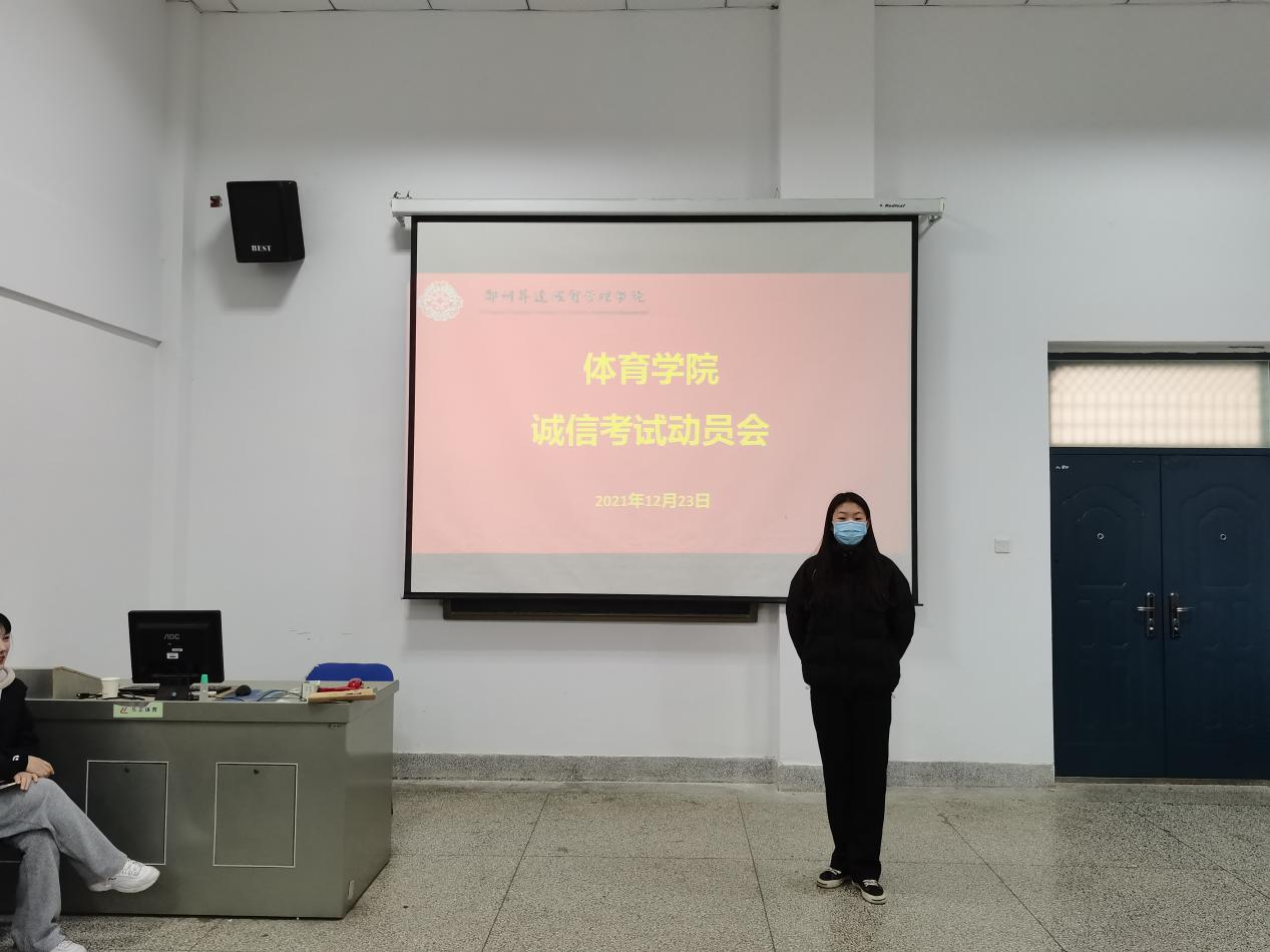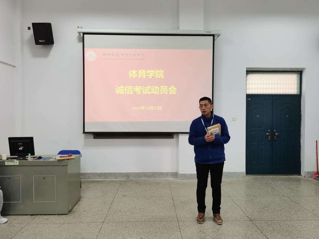 为加强公司学风建设,严肃考风考纪,营造公平公正的考试氛围,beat365于12月23日中午在beat365多媒体教室召开诚信考试动员会。beat365经理张王利,党总支书记杨明志,教学秘书陈阳光,行政秘书高建涛,社体教研室主任孟俊鸟,体舞教研室教师楚君,辅导员康晓晨、郭建菊、范自阳和部分员工干部、员工党员代表等出席本次大会,会议由公司行政秘书高建涛主持。